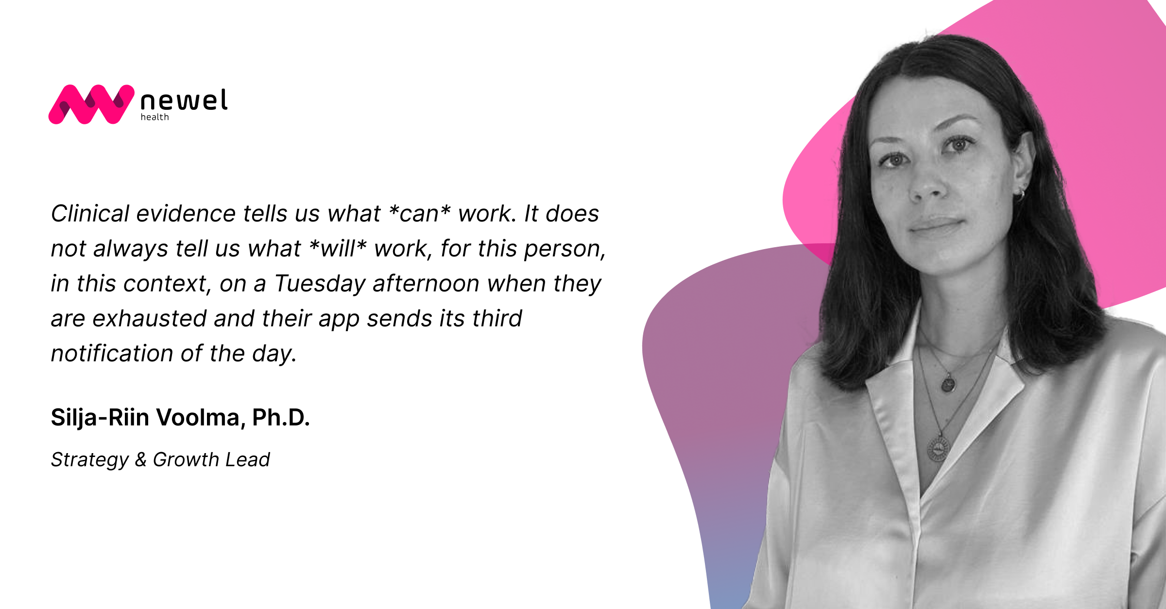 Clinical evidence tells us what can work. It does not always tell us what will work, for this person, in this context, on a Tuesday afternoon when they are exhausted and their app sends its third notification of the day.